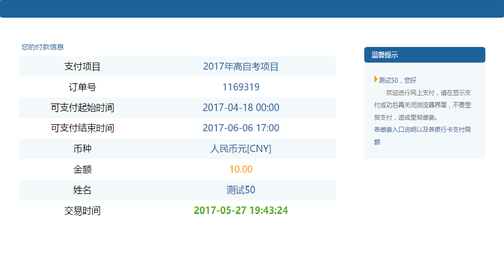 3.请在支付过程中,随时注意并记录支付平台和发卡银行给出的提示信息。
